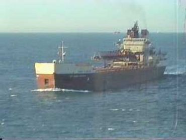 I got back in the van and started driving back to Nanticoke and finally I saw the ship coming in still a ways out there but oh boy was I happy to see it! I drove right down to the plant and of course security holds you there until they are secure at the dock and you better be sure your name is on the list of "invited" guests or your not going in there! My name was on the list though so then they told me to go ahead down to the ship. I didn't waste anytime!